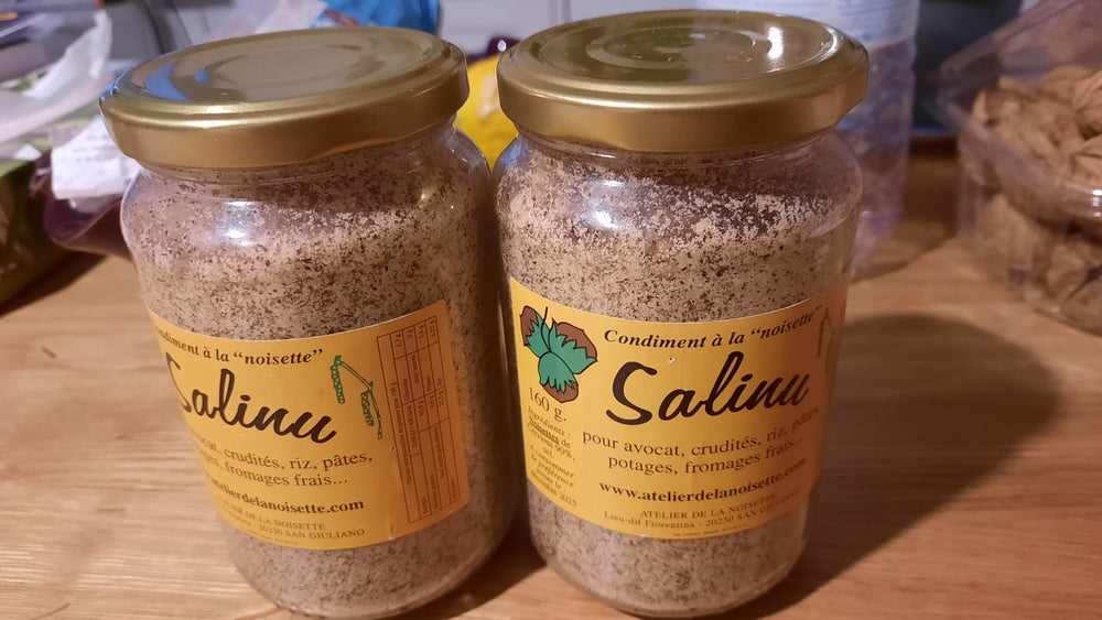Découvrez le Salinu, un sel unique à la noisette de Cervione, emblème de la gastronomie corse. Élaboré avec du sel marin pur et des noisettes de Cervione, reconnues pour leur qualité exceptionnelle, ce mélange offre une saveur douce et délicate qui sublimera vos plats. Fait avec passion et respect des traditions, le Salinu incarne l’authenticité et le savoir-faire artisanal de l’île.